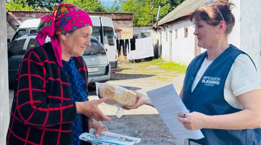 Коли сил зовсім немає – йду до церкви. Там, серед пісень і молитов, моя понівечена душа на мить зцілюється. А коли волонтери з церкви дають мені цей теплий хліб я плачу. Бо хліб – це Боже благословення, яке дає сили дожити до завтрашнього ранку. Дякую Operation Blessing і ORA, що не дали зголодніти та зневіритись у цій нужді».
